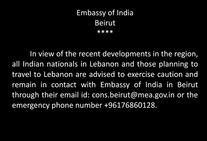 The Indian Embassy in Beirut remains committed to ensuring the safety and security of all Indian nationals in the region.