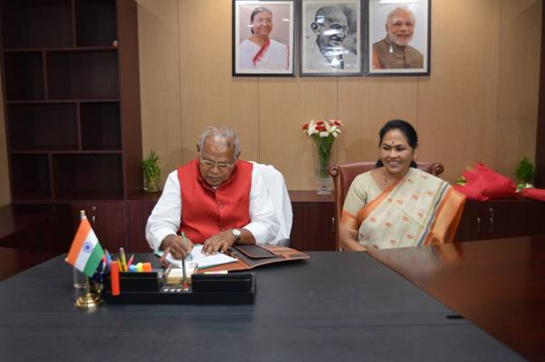 New Delhi: Jitan Ram Manjhi, former Chief Minister of Bihar, officially took charge as the Union Minister of Micro, Small, and Medium Enterprises (MSMEs) today. Alongside him, Shobha Karandlaje also assumed her role as Minister of State in the Ministry of MSMEs. Karandlaje has previously served as the Minister of State for Agriculture and Farmers’ Welfare and Minister of State for Food Processing Industries in the Government of India.