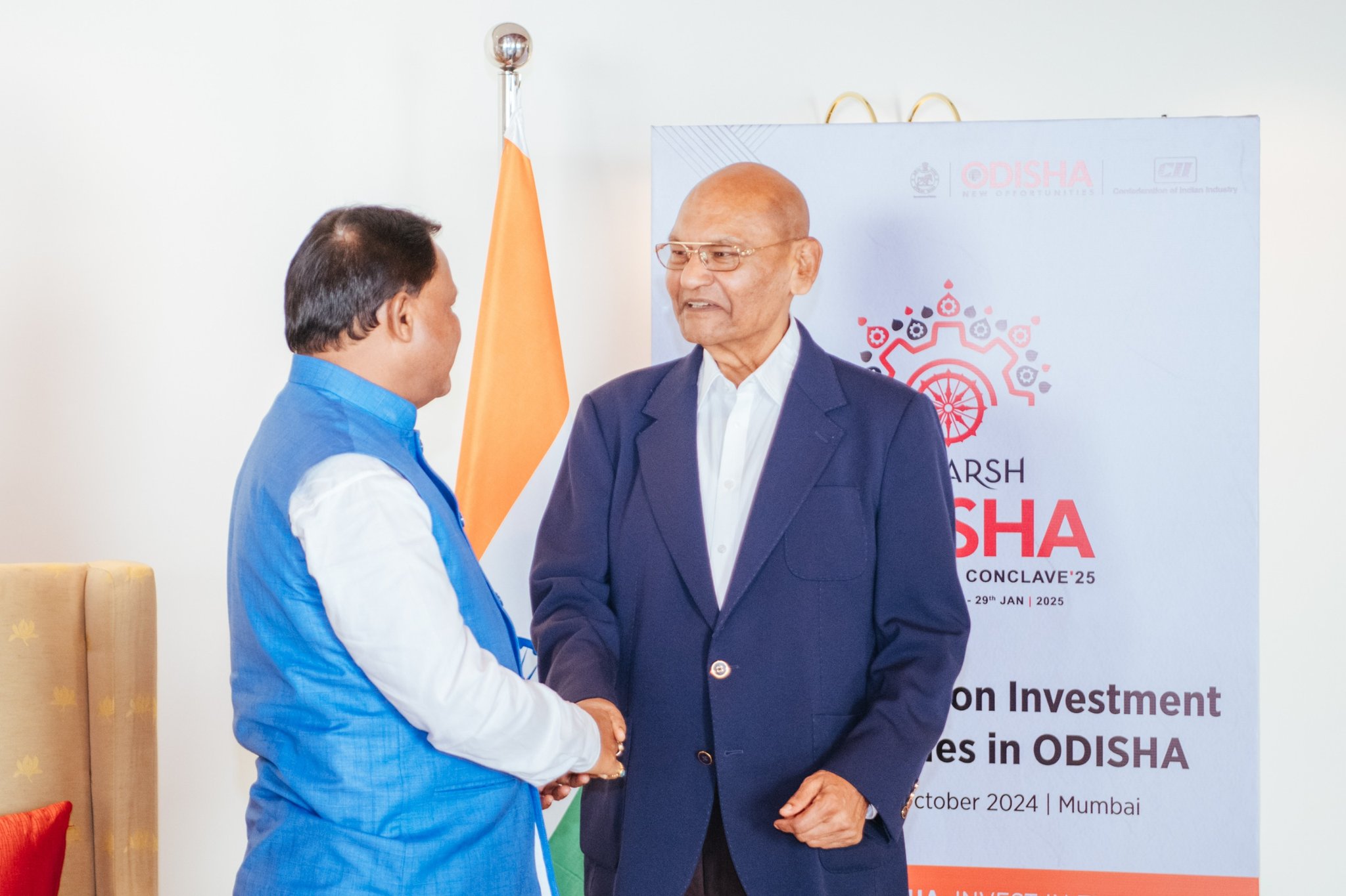 Bhubaneswar: Odisha Chief Minister Mohan Charan Majhi, along with Industries Minister Sampad Swain, took part in a high-profile investor meet in Mumbai, engaging with prominent industrialists to discuss key projects and investment opportunities for the state. The Chief Minister held discussions with notable business leaders, including JSW Group Chairman Sajjan Jindal, Vedanta Chairman Anil Agarwal, and Reliance Solar Energy Director Anant Ambani.
