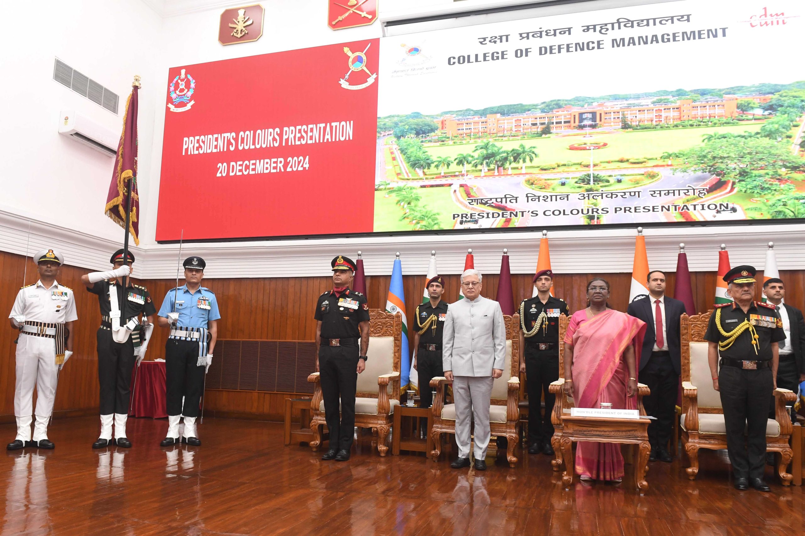 Secunderabad: The President of India, Droupadi Murmu, presented the Colours to the College of Defence Management (CDM) in Secunderabad today, acknowledging the institution’s pivotal role in shaping India’s defense leadership and strategy.