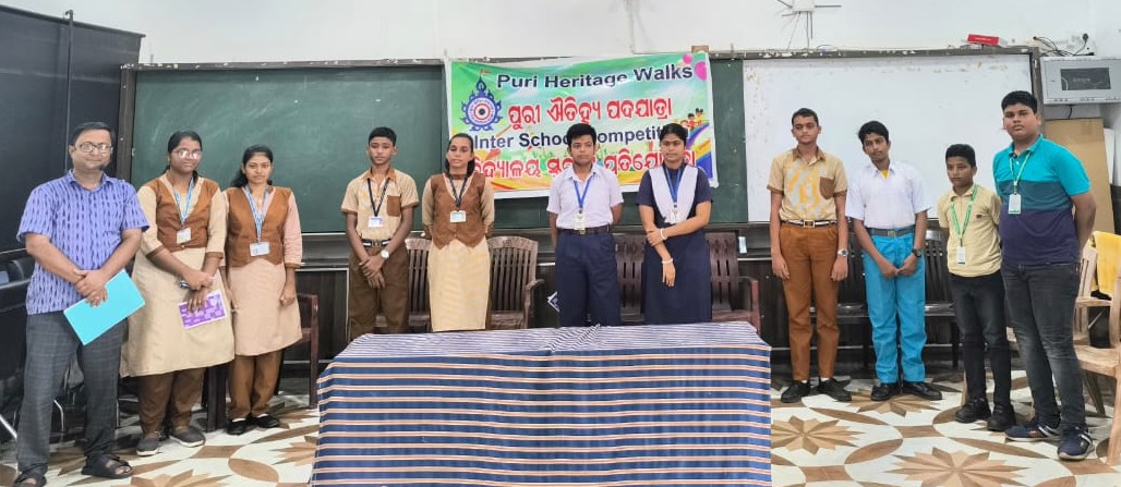 Puri: In the lead-up to the first anniversary of Puri Heritage Walks (PHW), a vibrant school-level competition was organised on Friday at PM Shri Biswambhar Vidyapitha to foster greater interest in local heritage among students. The event, aimed at nurturing curiosity and pride in the region’s rich cultural legacy, saw enthusiastic participation from over 70 students across Puri.