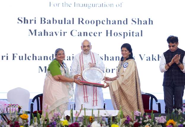 Surat: Union Home Minister and Minister of Cooperation Amit Shah inaugurated the Babulal Roopchand Shah Mahavir Cancer Hospital and Phoolchandbhai Jaikishandas Vakharia Sanatorium in Surat, Gujarat, on Wednesday. The event witnessed the presence of several dignitaries, including Gujarat Minister of State for Home Affairs Harsh Sanghavi.